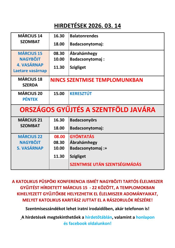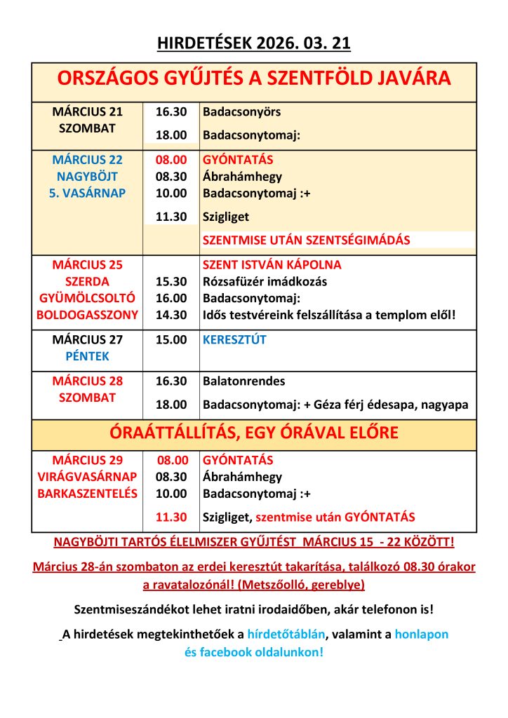 Kategória: Miserend | Szerző: zentai | Közvetlen link a könyvjelzőbe.